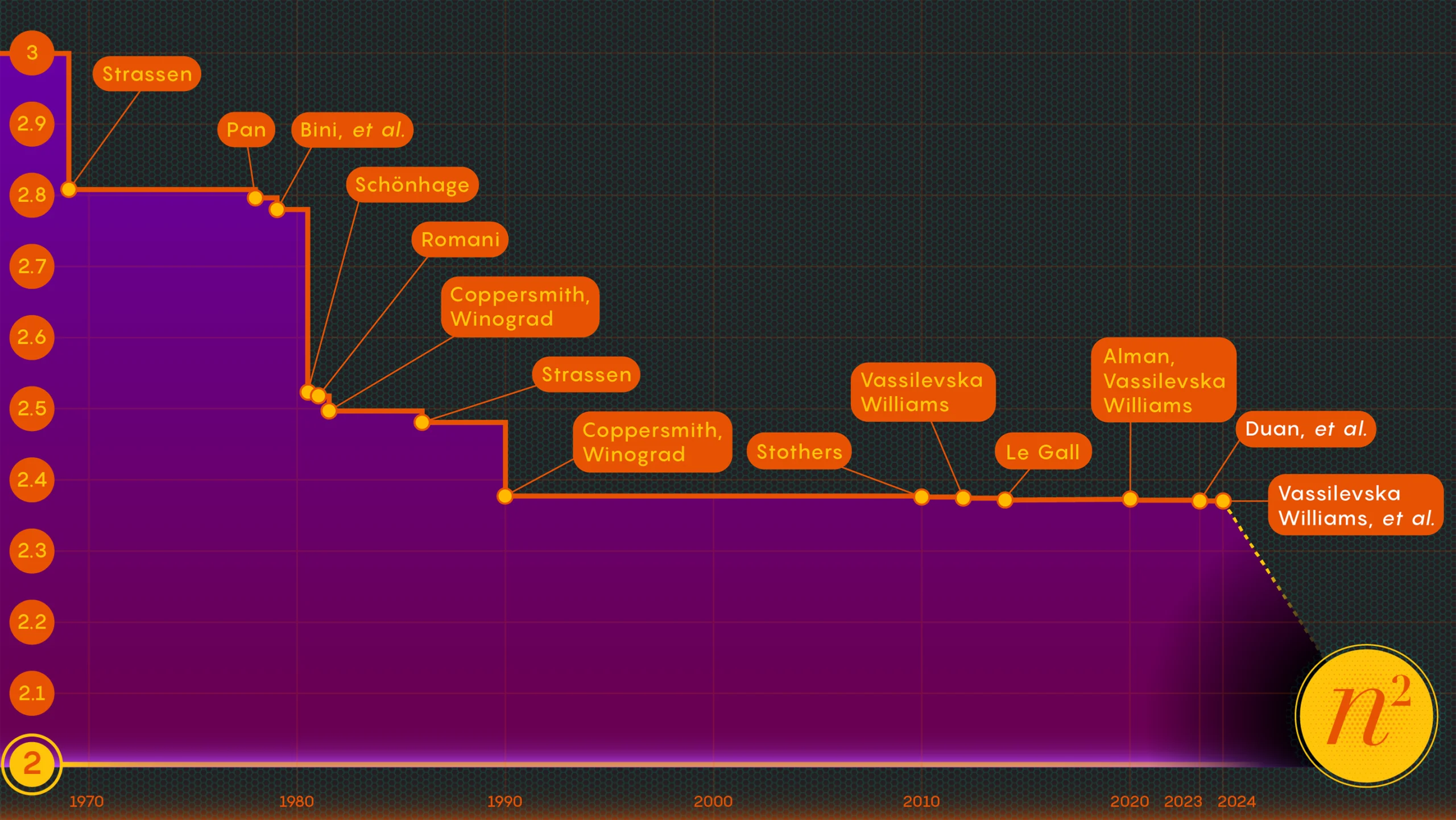 $$ a^T b = \sum_{i=1}^{n/2} (a_{2i-1} + b_{2i})(a_{2i} + b_{2i-1}) - \sum_{i=1}^{n/2} a_{2i-1}a_{2i} - \sum_{i=1}^{n/2} b_{2i-1}b_{2i} $$